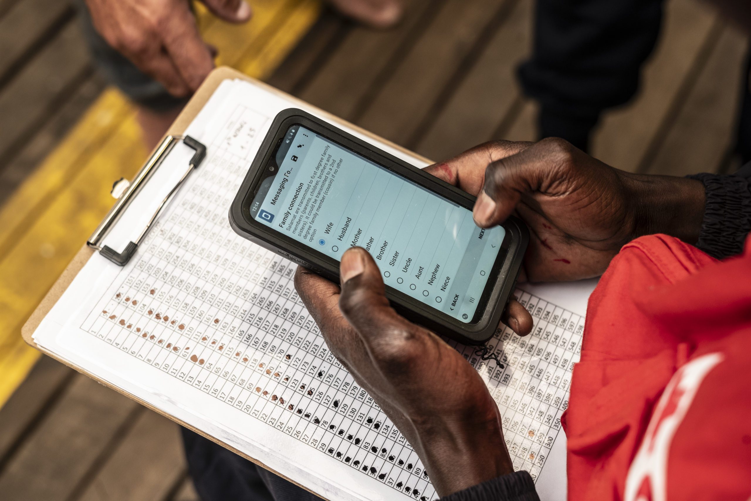 Wenn Überlebende an Bord der Ocean Viking kommen, haben sie die Möglichkeit, über Salamat wieder Kontakt zu ihren Familien aufzunehmen. Das Verfahren ist einfach und doch wirkungsvoll: Die Überlebenden geben die Telefonnummern ihrer Angehörigen an, die dann an das Team des Internationalen Komitees des Roten Kreuzes (ICRC) weitergeleitet werden. Diese Telefonnummern sind entscheidend, da sie das Potenzial haben, die Kluft zwischen den Überlebenden und ihren über die ganze Welt verstreuten Familien zu überbrücken.